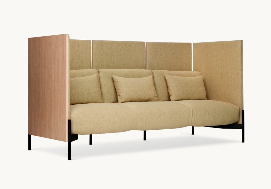 It is built around a solid beech and metal frame, with soft cushions for comfort in whatever activity you choose. Adapt yours with clever pre-configured components to suit your needs, including USB-C power outlets, sliding tables, alternative armrests, colours and materials, and high or low backs for privacy or collaboration-friendly forms.
