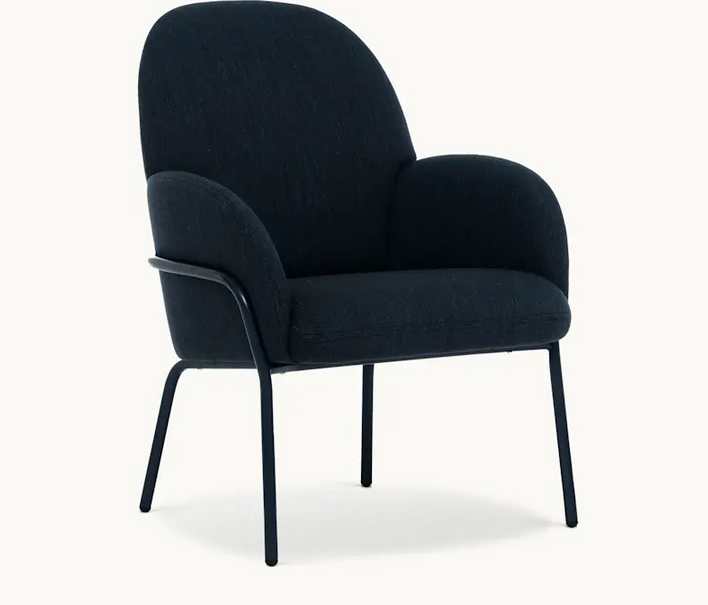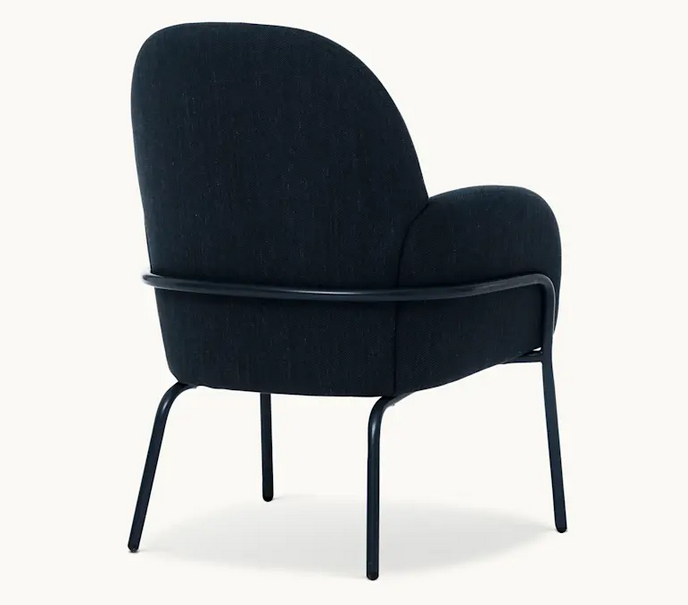 Sling is a distinctive lounge chair, with contrasts of hard and soft from every angle. Its metal frame gives an impression of strength, against upholstery in soft tones and tactile textile.