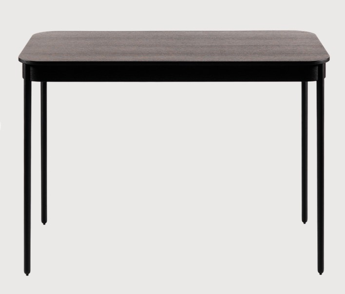 The shape of the table expresses a complicated simplicity with geometric forms. Round becomes oval becomes rectangular. Round legs turn oval where they meet the rectangular tabletop. Figurine can be bought in a variety of colours and stains.